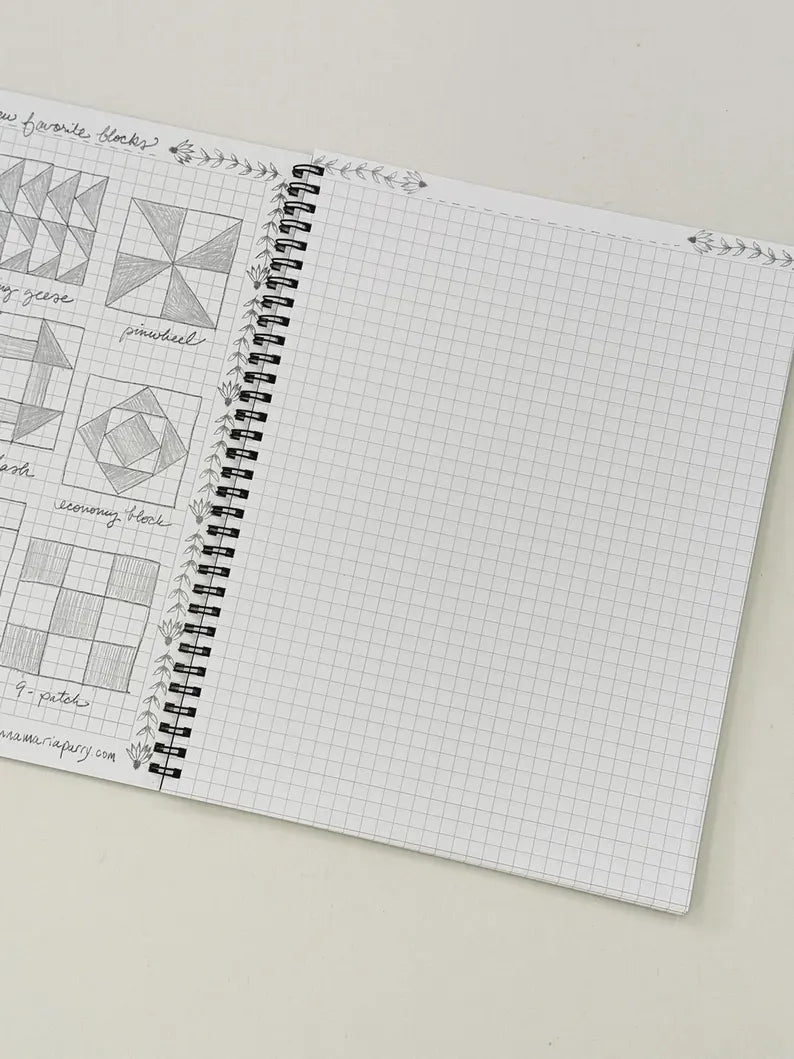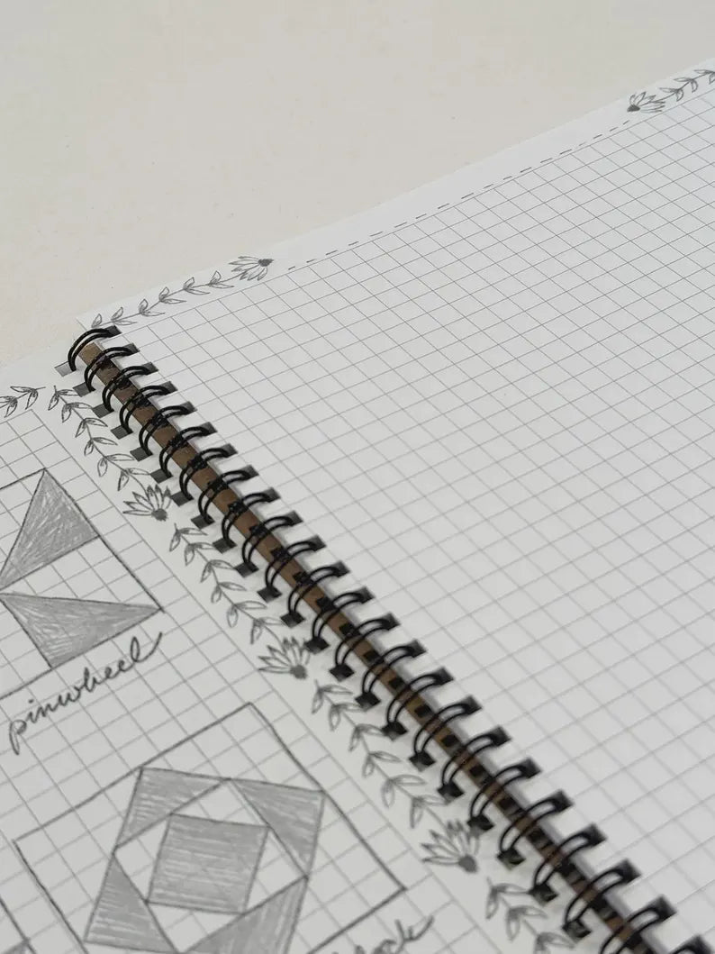 "Indulge your inner organized designer with my new graph paper notebooks! These sturdy 9x11" spiral bound books have a custom coloring of my new Zinnia Show print on the cover to inspire you every time you pick it up. Each 9x11” notebook contains 50 two sided sheets printed with 1/4" graph paper. I find graph paper an indispensable part of my designing, dreaming, planning and doodling."