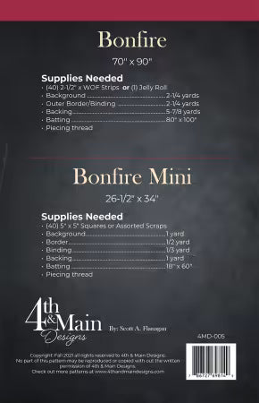 Using your favorite jelly roll make two mirror image blocks that when sewn together look like logs stacked together to make your fall bonfire! Want a smaller quilt? Make it mini with a charm pack and end up with a 26” x 34” finished wall-hanging.