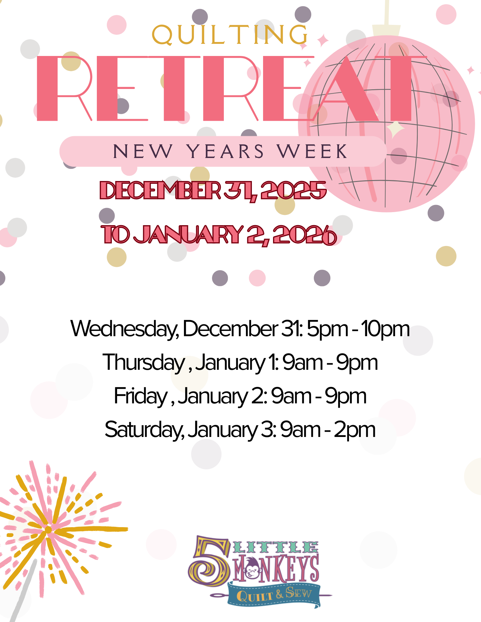 Thursday , January 1: 9 am - 9 pm: open sew with demo by Angie