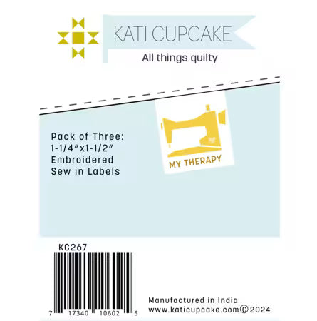 My Therapy, is the perfect label for your finished sewing projects. 3 labels measuring 1-1/4" x 1-1/2"