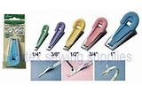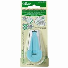 Clover Fusible Bias Tape Maker is suitable for heat sensitive adhesive tape. Make bias tape from any material you like. Simply combine your fabric type of your choice with Fusible Web and iron on. Set heat sensitive adhesive tape in the upper groove and a piece of material cut on the bias in the lower groove. By pulling the two at the same time and ironing them, you can easily make bias tape that can be temporarily bonded using an iron. Complete instructions included. Sizes from 1/4in-1in